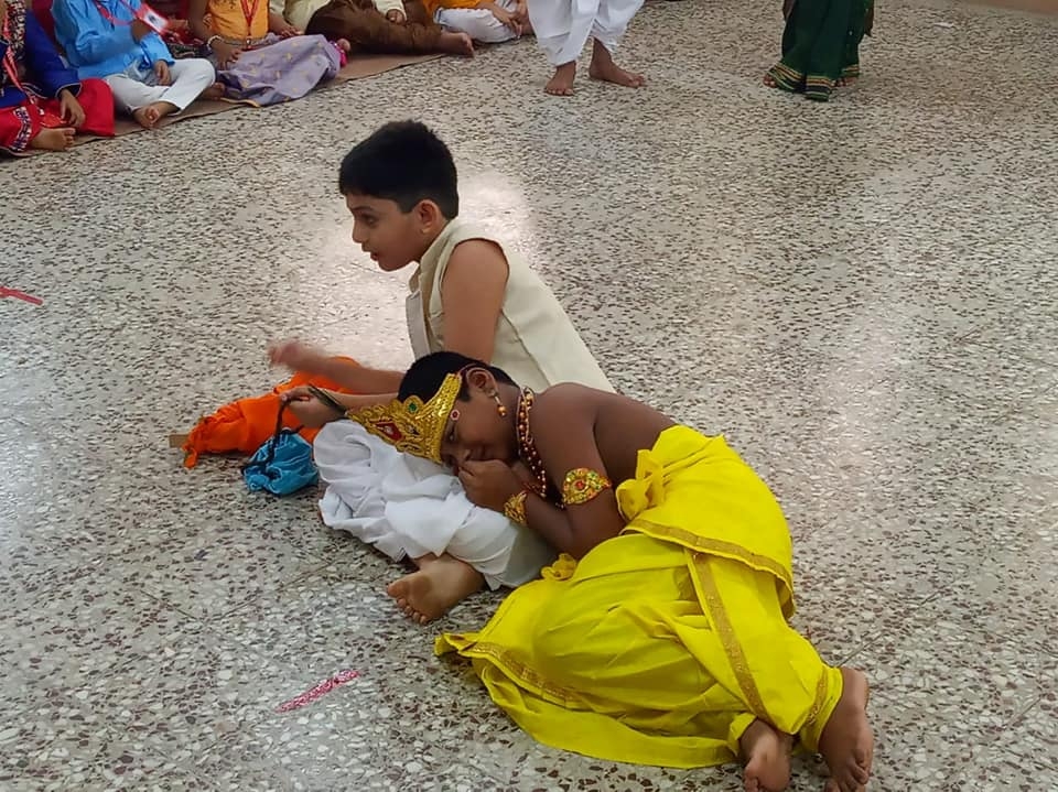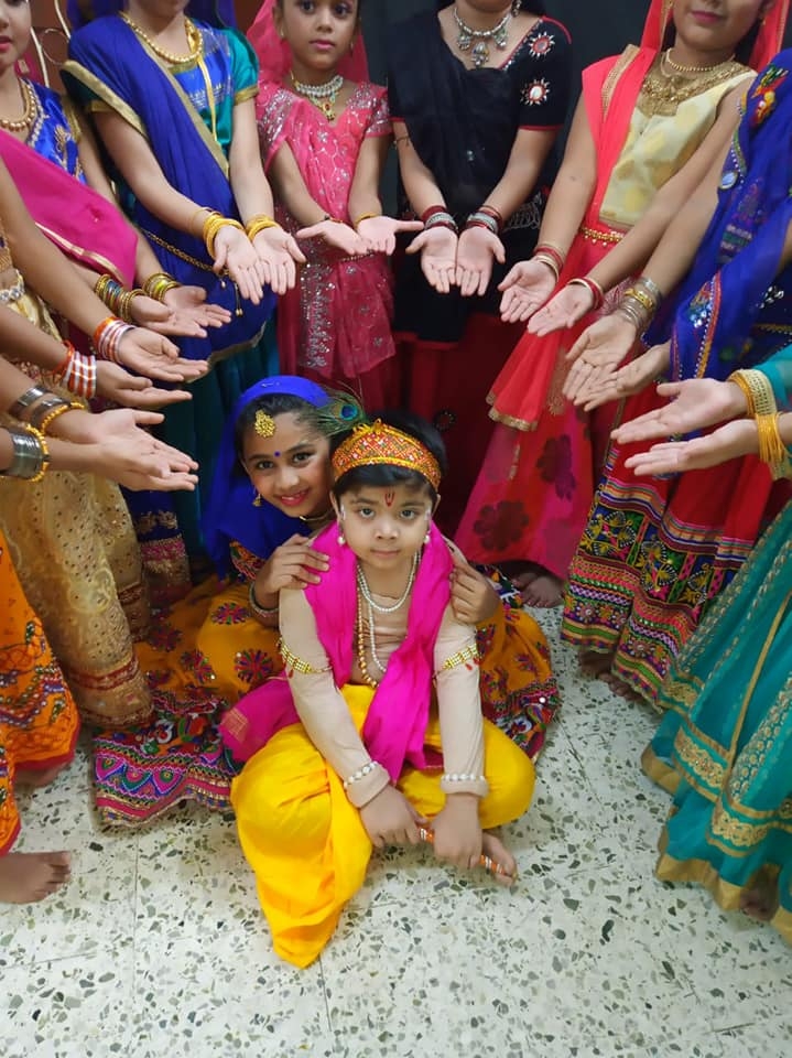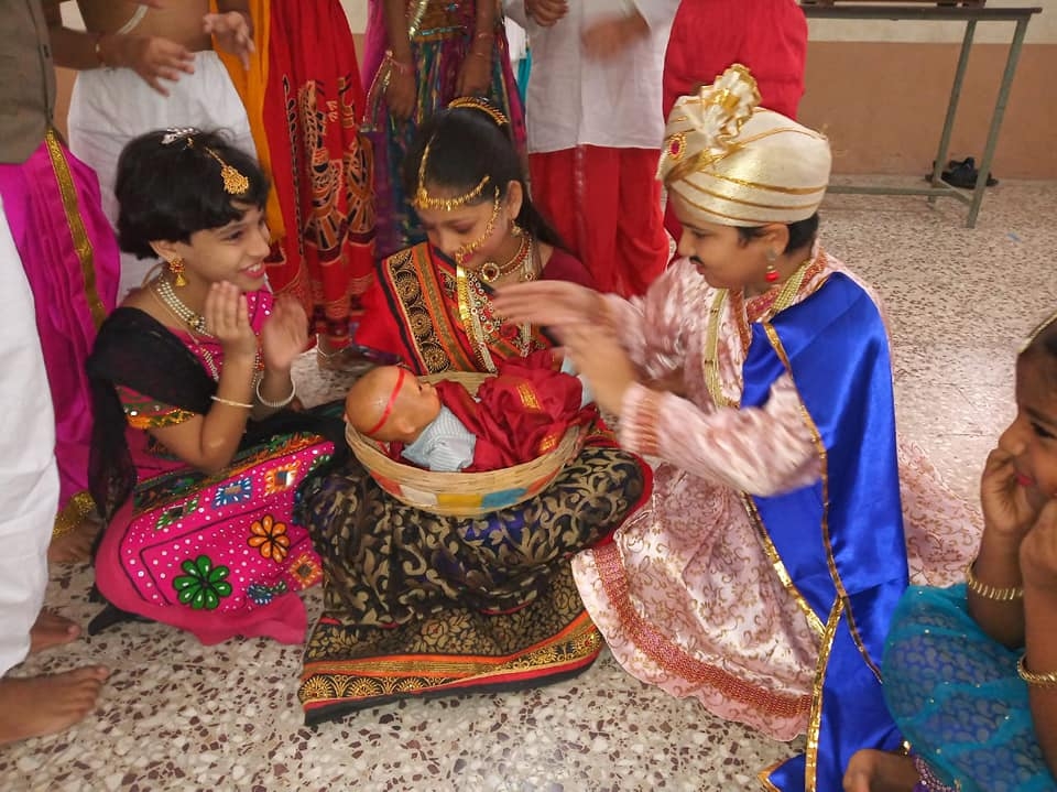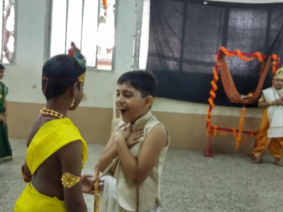 PTVEMS PRI SEC celebrates the festival of Gokulashtami with great enthusiasm and fervour.….On Friday, 23rd of August 2019, we celebrated Janmashtami at school.Our students came traditionally dressed as Radha and Krishna and gop-gopikas . A splendidly colourful program was organized by the children and staff of the school; where students presented songs, dance performances and a short role play. An awareness on Janmashtami, the mythological stories on Krishna – through plays and narrations; were presented to the children.