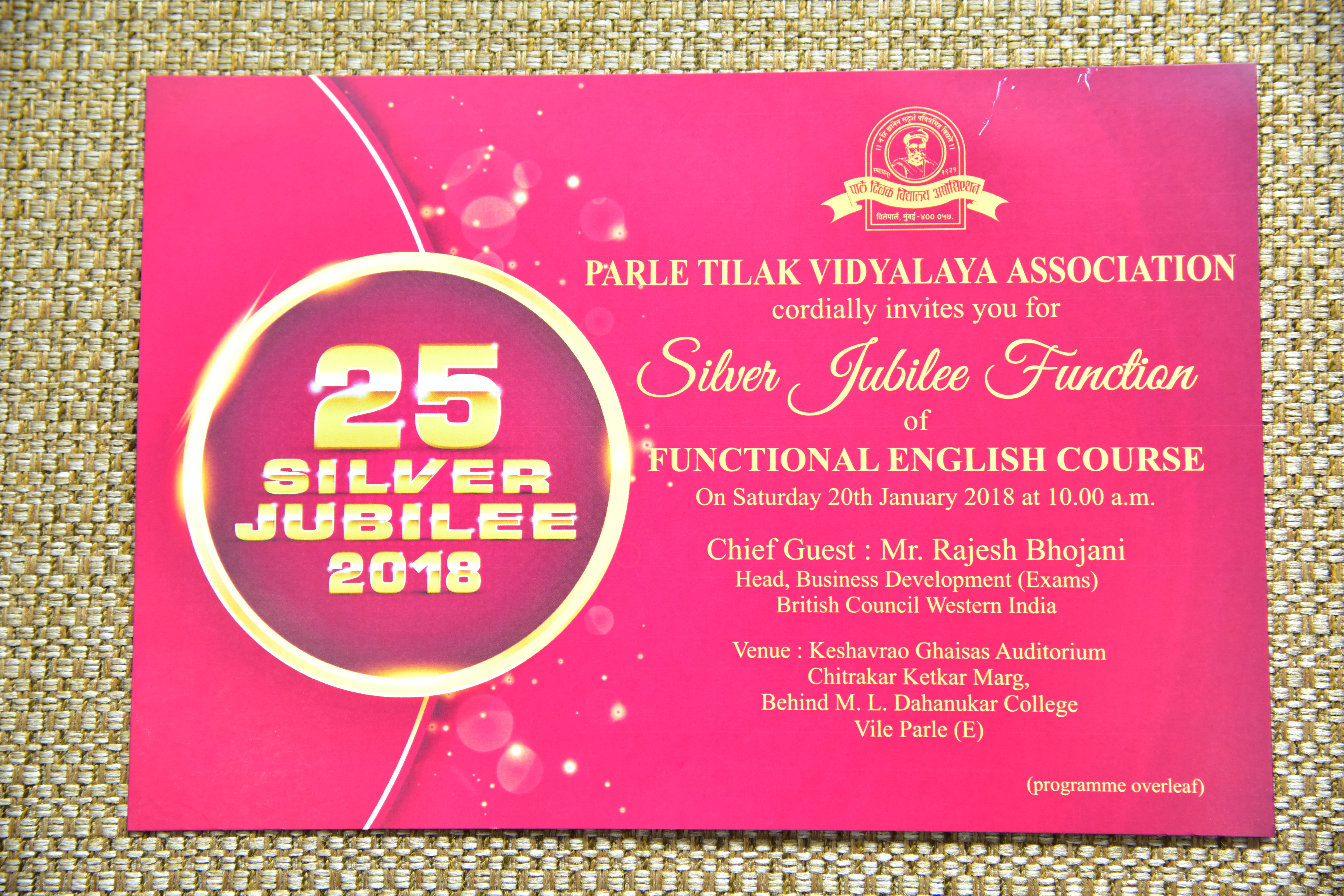 अशा वरील उपक्रमास २५ वर्ष झाल्याच्या निमित्ताने २० जानेवारी रोजी संस्थेच्या केशवराव घैसास सभागृहात एक हृद्य सोहळा पार पडला. अध्यक्षस्थानी ब्रिटिश कौंसिल (परीक्षा ) यांच्या पश्चिम विभागाचे प्रमुख राजेश भोजनीं होते. प्रथम या उपक्र,याची संपूर्ण माहिती देणारी एक चित्रफीत दाखवण्यात आली. त्यानंतर संस्थेचे अध्यक्ष श्री. अनिल गानू यांनी इंग्रजी भाषेचे महत्व सांगितले. इंग्रजी अजूनही एक जागतिक भाषा असून इतरांशी संवाद साधण्यासाठी ती चांगली येणे आवश्यक आहे व हे हेरूनच २५ वर्षांपूर्वी संस्थेने हा उपक्रम सुरु केला. अध्यक्ष श्री. राजेश भोजनीं यांनी इंग्रजी भाषेत चांगले लिहिणाऱ्याला सध्या जागतिक मागणी आहे तर आर्थिक दृष्ट्याही इंग्रजी येणाऱ्याला जास्त पैसे मिळतात असे प्रतिपादन केले.