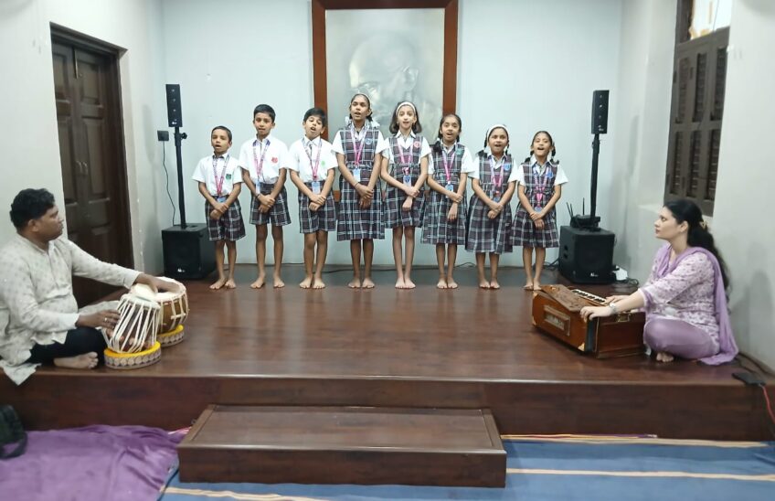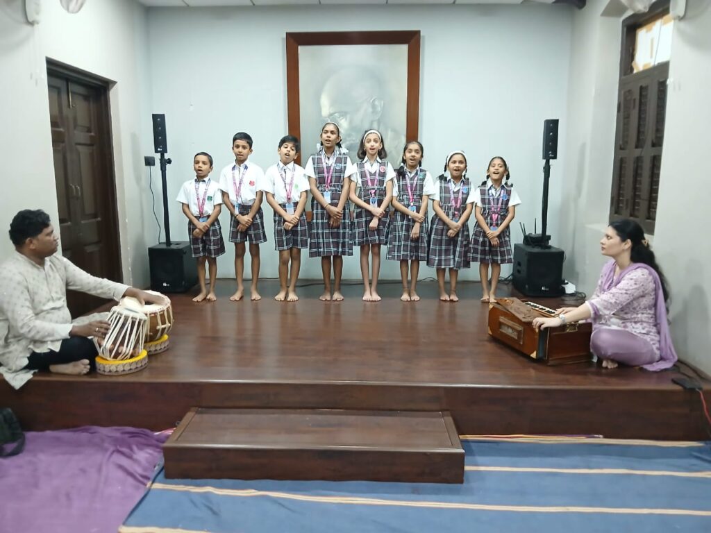 Our school’s Music teachers Mrs. Monali Ambekar and Mr. Sanket Mhatre guided the students through their preparation and accompanied them on Harmonium and Tabla.