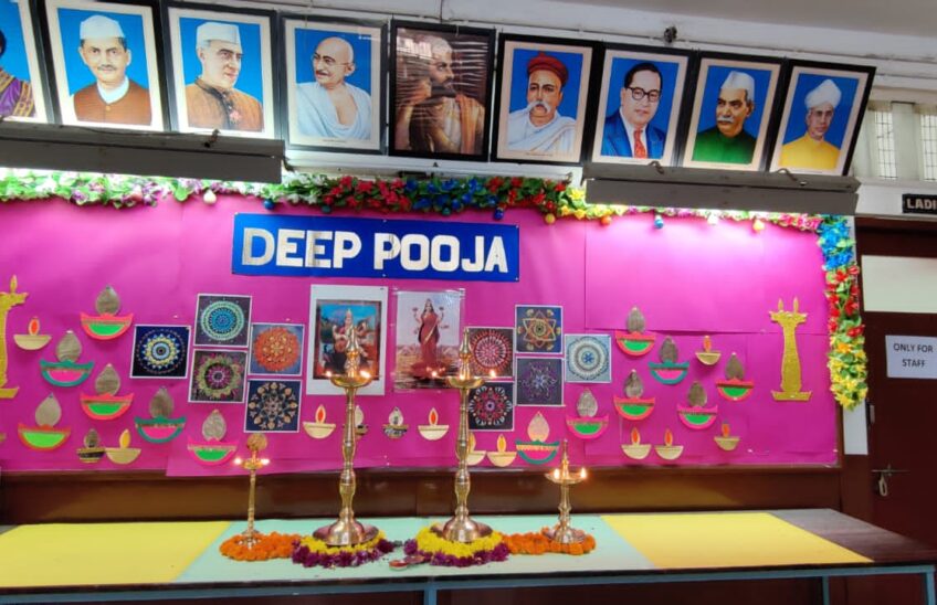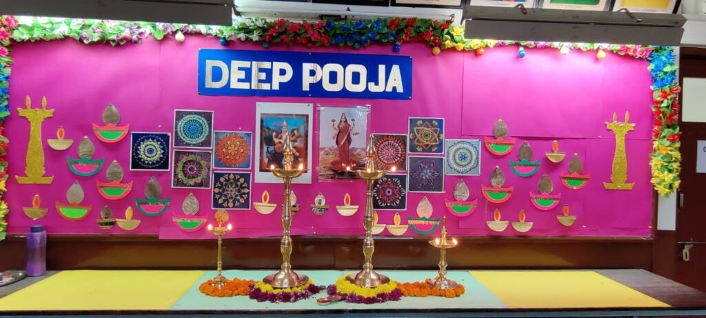 The whole school joined in as the beautiful rendition echoed in school. Colourful decoration and the beautifully arranged diyas added to the beauty of the celebration.