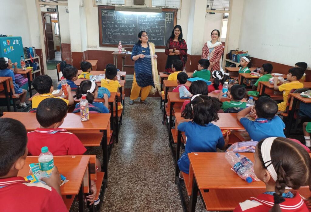 At Parle Tilak Vidyalaya an interactive, fun loving awareness program on Plastic was conducted by Team RSRR (R Society R Responsibility) to make them understand sources of non biodegradable waste, the consequences and the R.R.R.R theory (Refuse, Reduce, Reuse, Recycle).