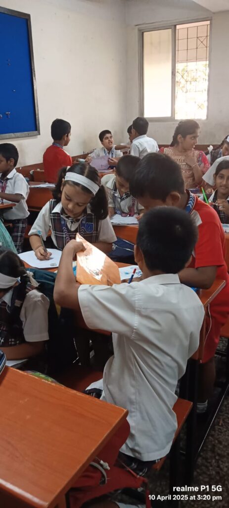 With enthusiastic support from parent volunteers, the students from Std 1 to 4 enjoyed unique games and interactive sessions. These were carefully designed to entertain, engage, and subtly educate. Std 1 students had a great time with games like Passing the Bottle, Ball Fun Game, Puzzles and Riddles. Std 2 students enthusiastically participated in the Mingle Game and Ball Game. Std 3 explored creativity and kindness through the Back-to-Back Drawing Game and Tell Me Something Nice activity, learning the value of compassion. Std 4 had their minds tickled in the Think Outside the Box session, filled with logical puzzles, riddles, jokes, and tongue twisters.