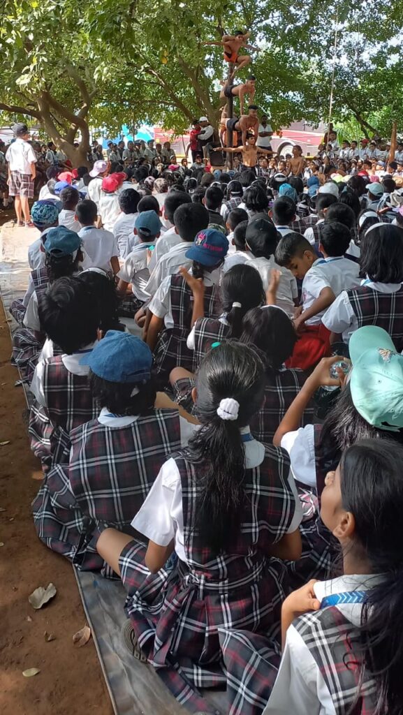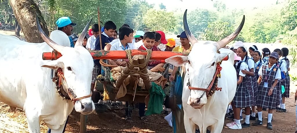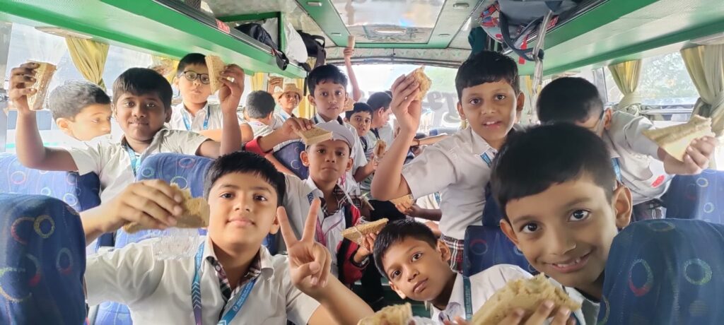Then we headed for lunch, followed by some other activities like oil extraction, drip irrigation and Bee Apiary.The escorts interacted with the students providing them with the information about the above activities and sensitise them towards ‘Mother Nature ‘. After the nature walk, it was time for the most awaited part of the picnic – ‘The Magic show’. The magician performed some amazing tricks which children enjoyed a lot. The ‘Snake show’ also was amazing. Last but not the least – ‘Malkhamb’ where a group of local gymnasts performed breathtaking aerial yoga and gymnastic postures using wrestling grips in concert with stationery pole.