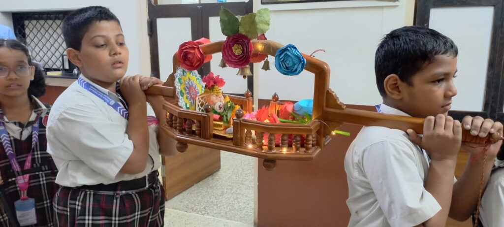 The celebrations started with the procession. Students sang various songs to welcome beloved ‘Bappa’ followed by performing Ganesha’s Aarti with great devotion. The students chanted ‘Ganesh Stotra’ along with Monali Ambekar tr.