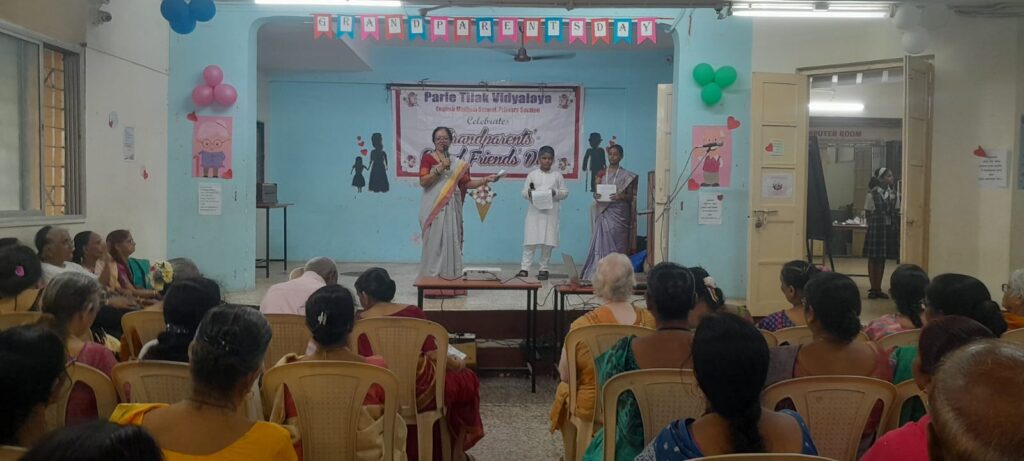 A fun-filled function was organized for the grandparents in the school hall. Our Headmistress Mrs. Kalpana Kalekar grandly welcomed our beloved guests(grandparents). The little shining stars of the PTVEMS Primary Section exhibited their love and affection by singing songs and reciting poems. Our Music teacher Mrs. Monali Ambekar had arranged the ‘Antakshari’ programme for the grandparents.