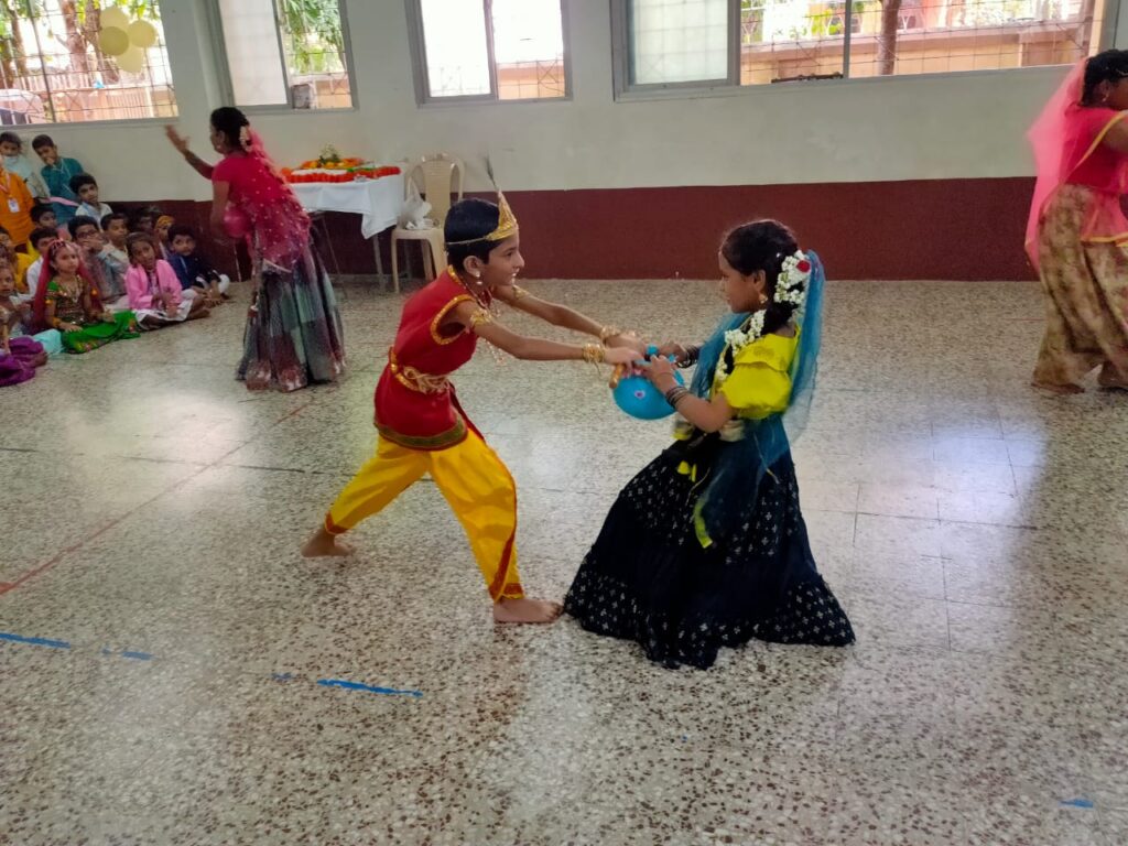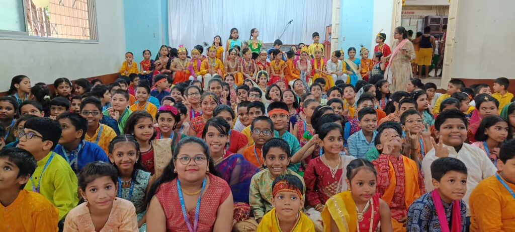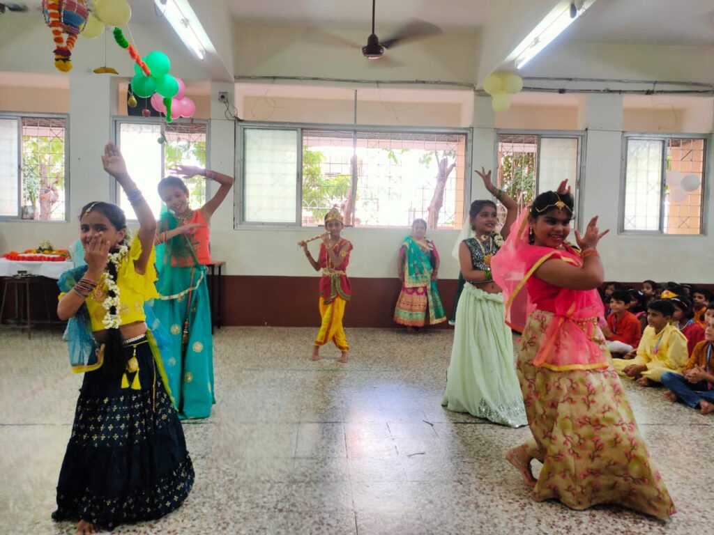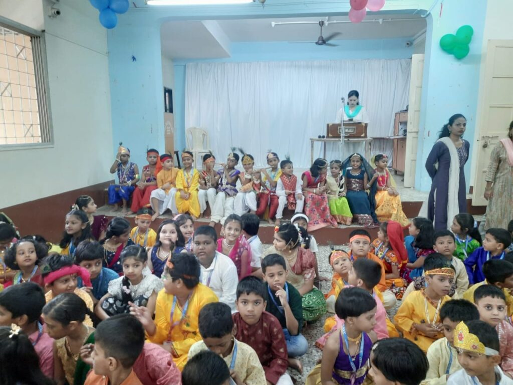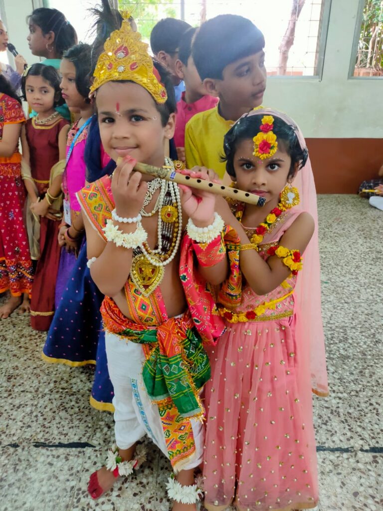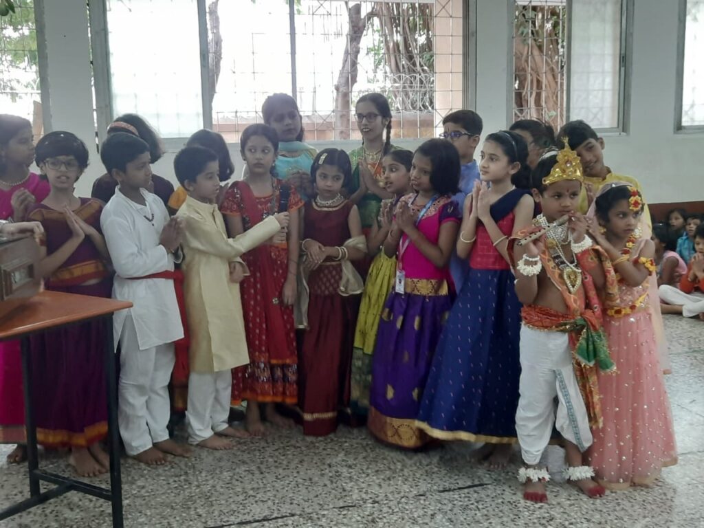The importance of this day was delivered by Mrs. Neha Jadhav, class teacher of Std I/D Bhajans and songs dedicated to Lord Krishna were sung by Little Gopis and Gopikas of our school.