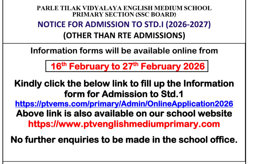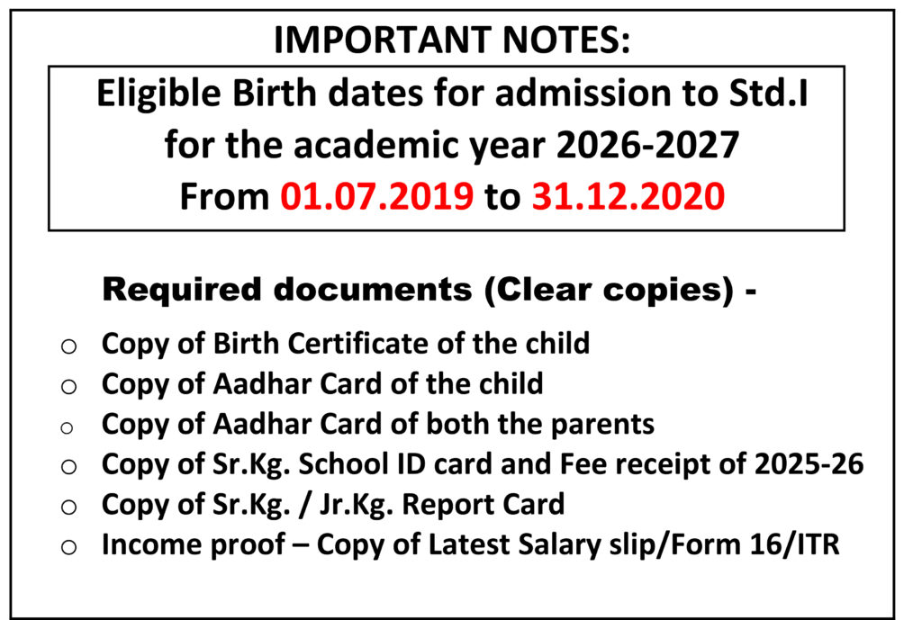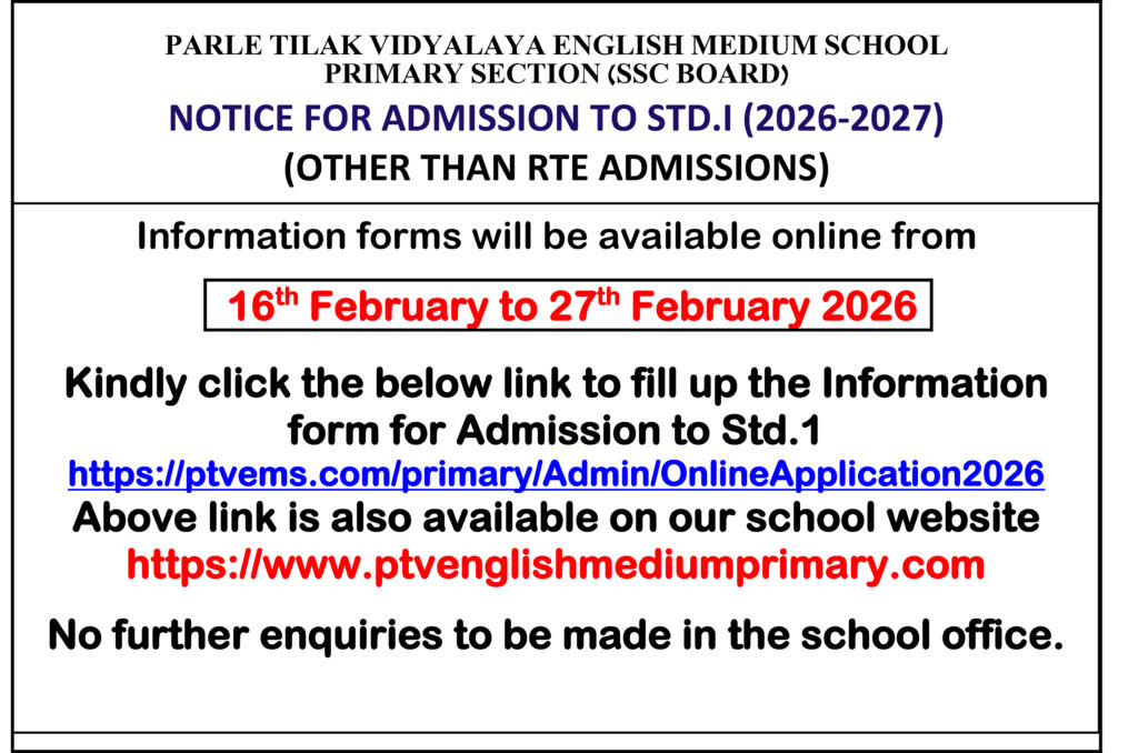 Kindly click the below link to fill up the Information Form for Admission to Std. 1: