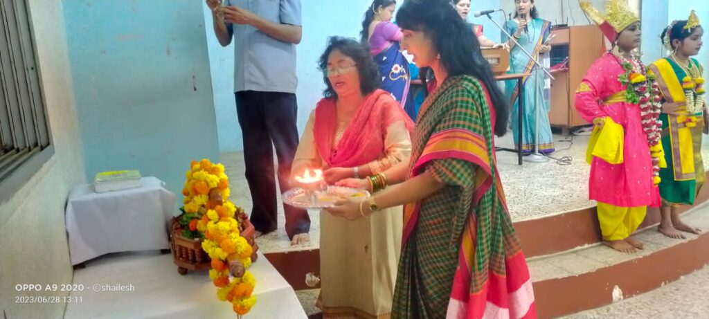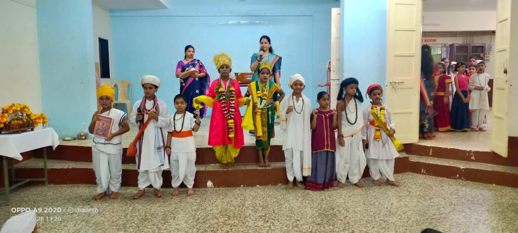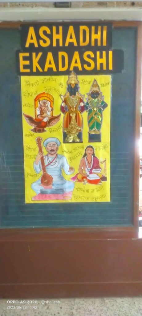 The celebrations comprised of Vithoba -Rukmini’s aarti , introducing our children to the notable saints and briefing them about how did they spread about religion and devotion in their own ways .