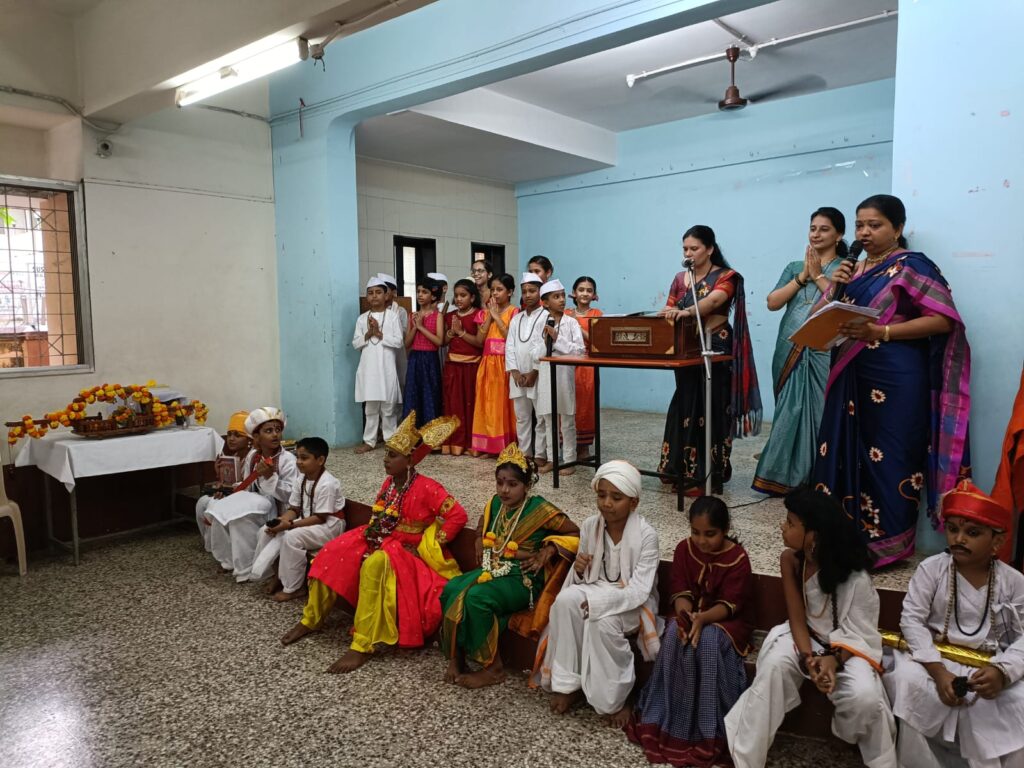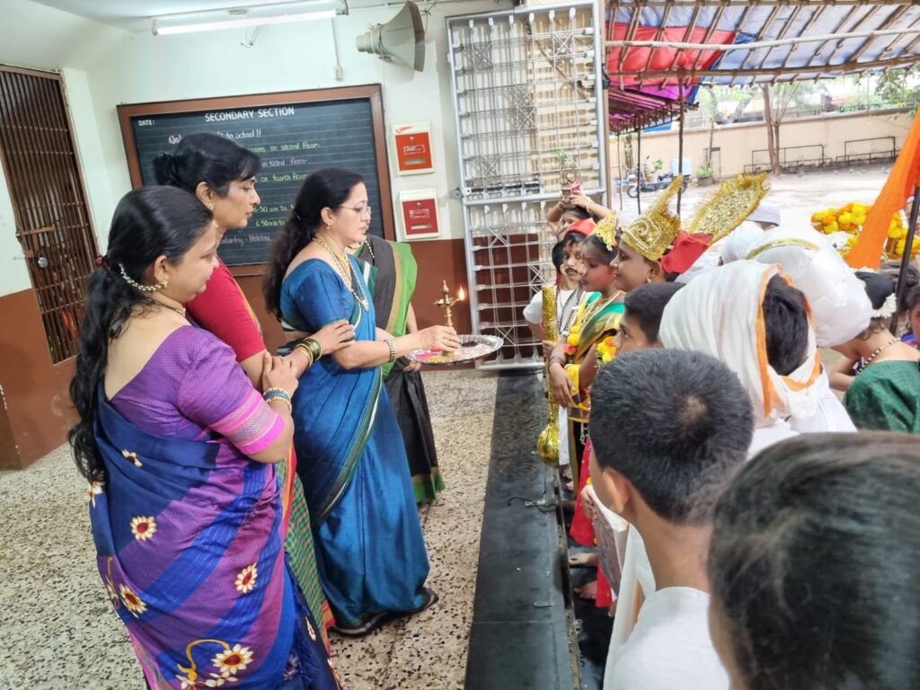 Beautiful and devotional display boards were put up by our art tr. Mrs. Shilpa Jadhav on account of the occasion.Students left school after receiving prasad.