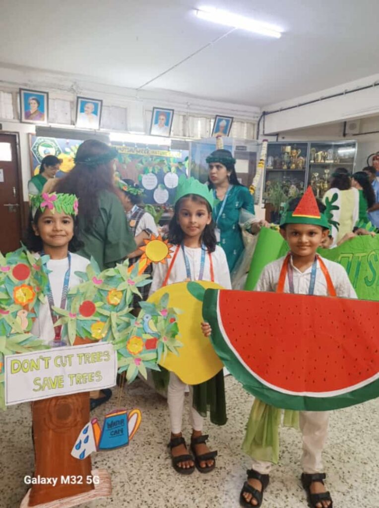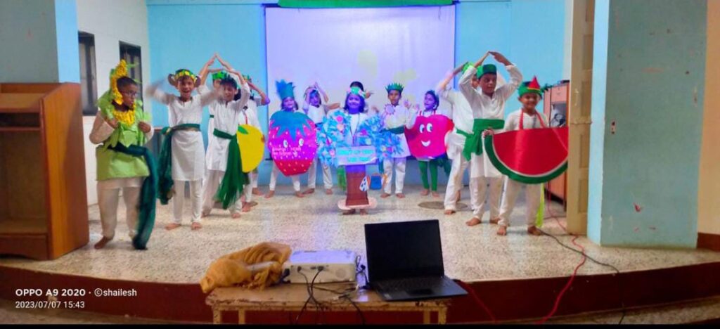 A short programme was organised in the school hall in which Shalmali Agre the student of grade 3 addressed the audience as a tree. The dance song ‘Ped Lagao’ was beautifully performed by grade 4th students, bright costumes resembling different fruits and vegetables by grade 1 students made them look more adorable in the song adding smiles to everyone’s faces.