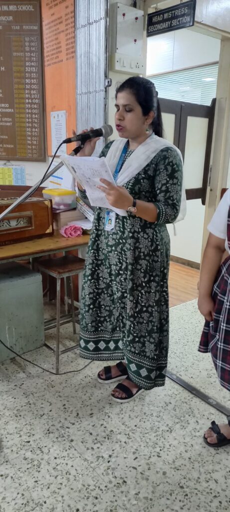Each day of the week, students expressed the importance of trees in our lives through various poems and songs sung during the assembly by Sanvi Ipte, Shreya Wagh and Riyana Sarangdhar.