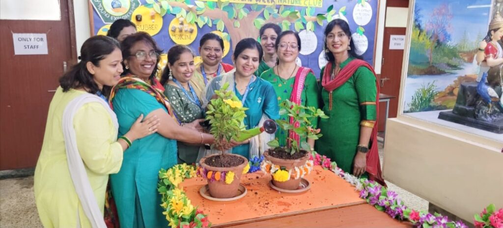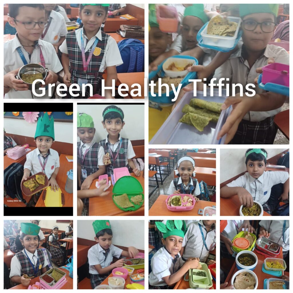 ‘Go Green ‘ initiative was taken by the teachers and students.Teachers by dressing in green and students by wearing green headbands and carrying green healthy tiffins for the day.