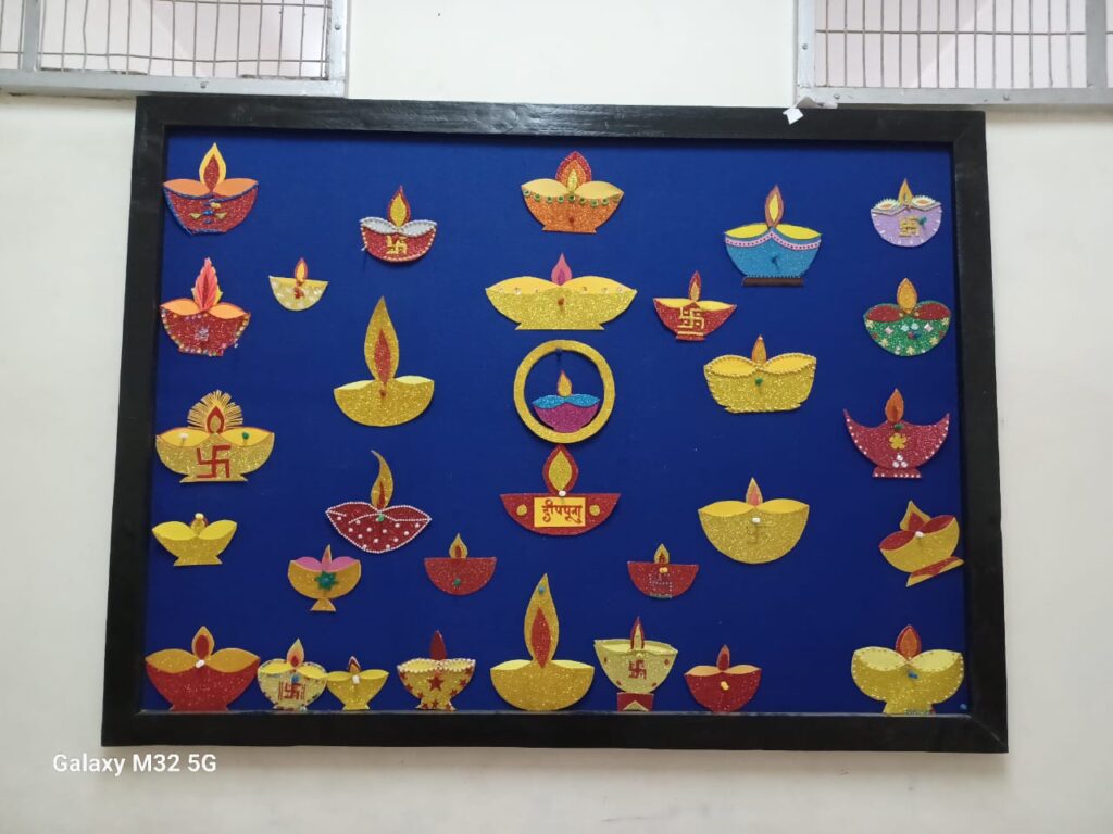 PTVEMS Primary and Secondary Section celebrated ‘Deep Pooja’ on 17th July 2023. On this day the ritualistic worship of lamp is done. Deep pooja is done on the last day of Ashadh month and we call it ‘Ashadh Amavasya’. Beautiful and different traditional diyas were lit up and decorated with floral design(रांगोळी) by our art teacher Mrs. Shilpa Jadhav. Students of all the standards from 1 to 4 expressed their gratitude towards Deep Pooja. The school’s display board was decorated with different golden diyas which were made by our students. The importance of this day was delivered by Mrs.Monali Ambekar our Music Teacher. As we know one lamp lights other lamps, similarly we too should try to enlighten someone who is deprived of education due to some shortcomings.