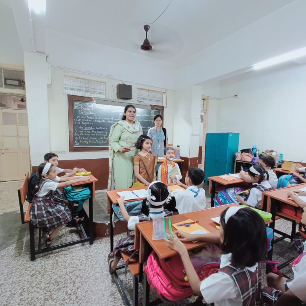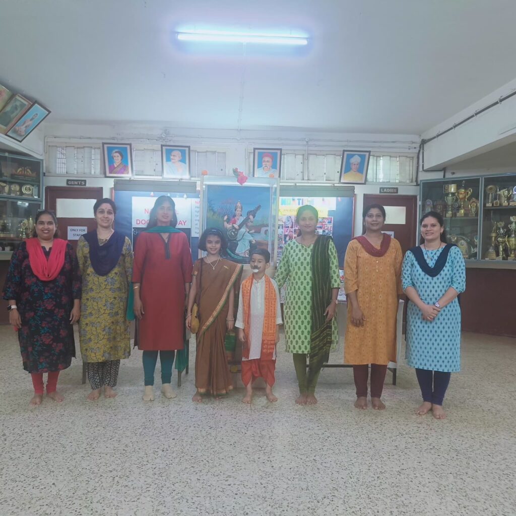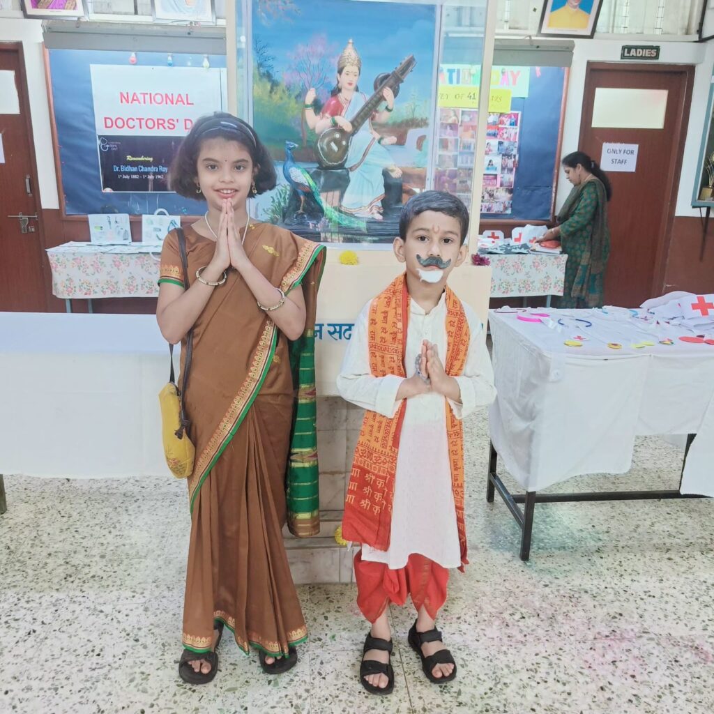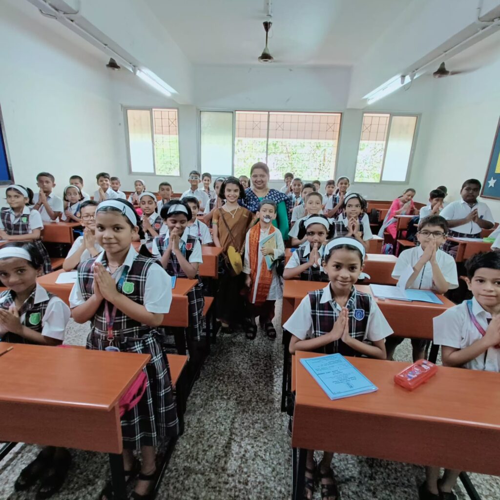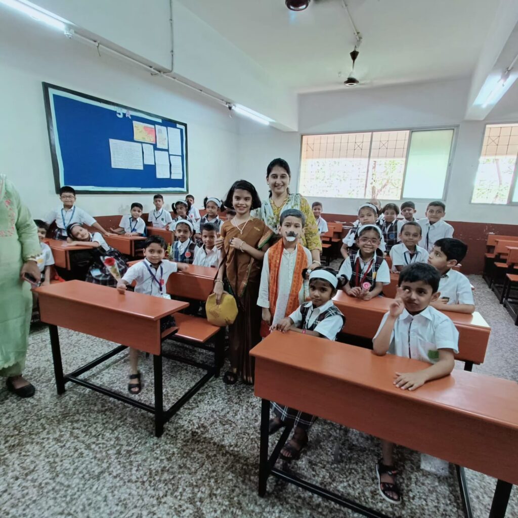 Two students were dressed up as educators – an ancient time Guru and a modern teacher, depicting the similar role by both and they visited all the classes.