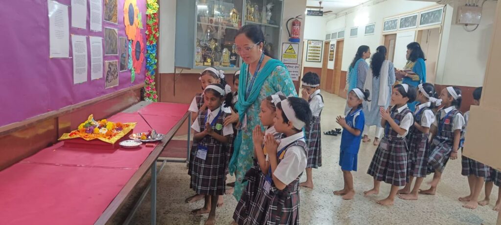 The importance of this day was delivered by Mrs. Saira Pereira after the prayer. This occasion was celebrated with great devotion. Students came class wise to pray and seek blessings from Naag Devta. Prasad was distributed to them.