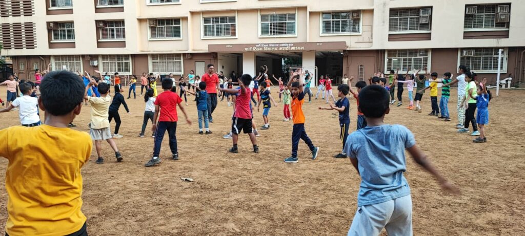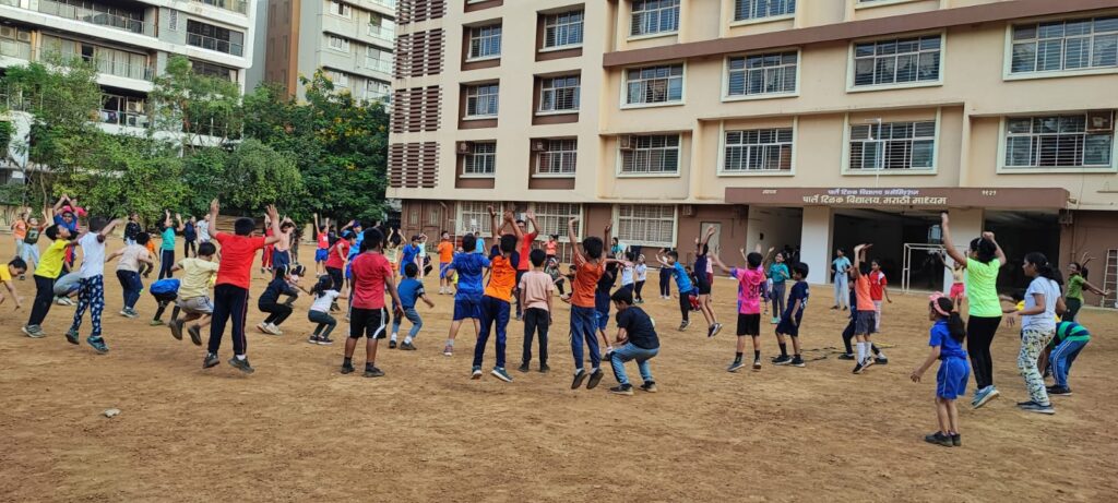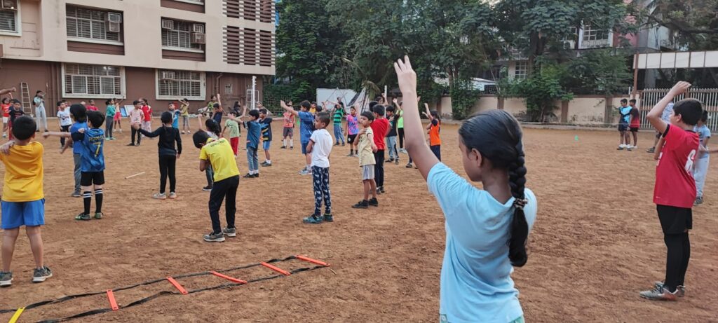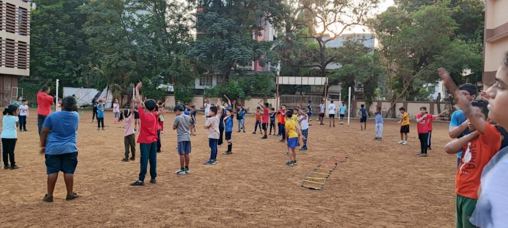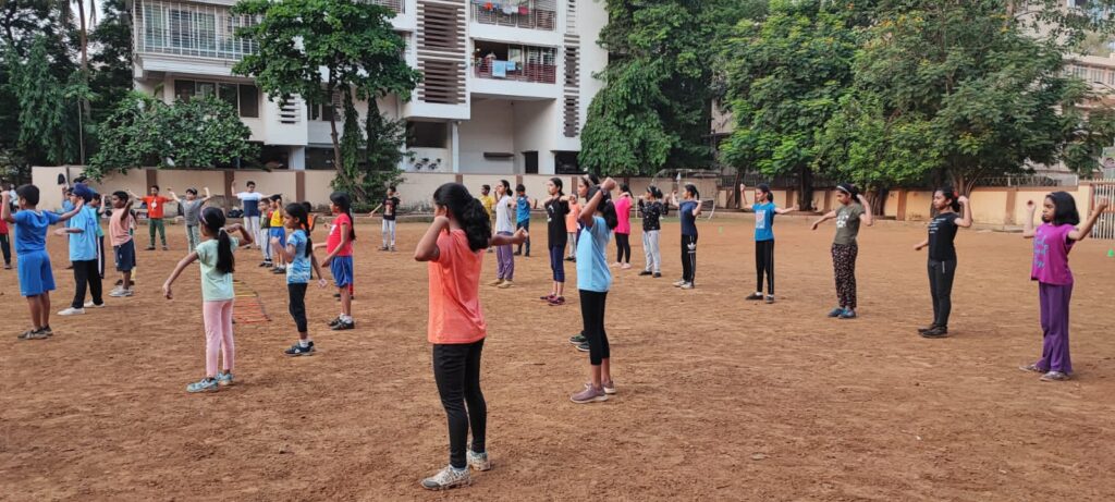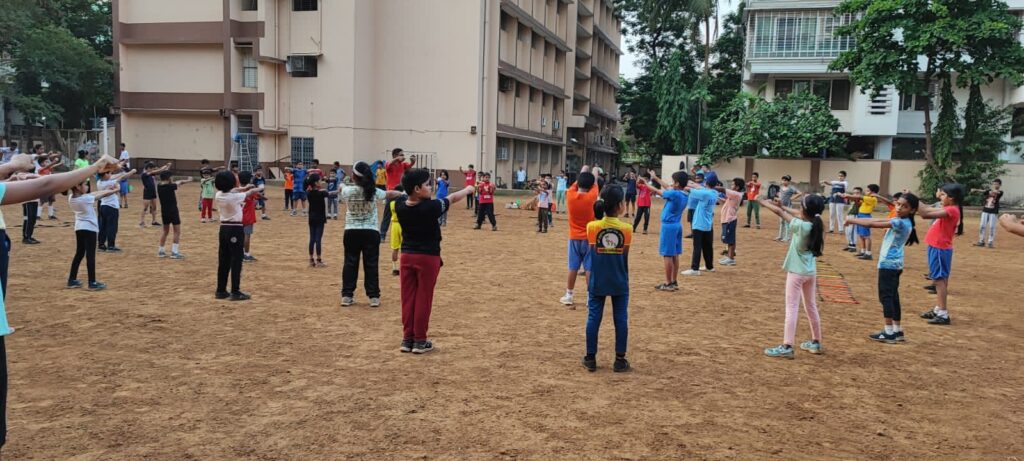 No child likes *Always studies & no play* and so as soon as PTVEMS primary section announced about the Fitness Summer Camp during the summer vacations, children flooded their teachers with enquiries for the registration forms and showed their enthusiasm and zeal for the camp right then . Having to wake up so early in the morning unlike their regular schedule seemed like no problem at all .This 10 day camp is designed in a way where children get a jest of all the outdoor games & excercises for which equipments like low hurdles, hoops and speed ladders, medicine balls are used for various aerobics workout. The hardwork of our PT teacher Mrs.Agnes Shastri is paying off as our students seem to enjoy every bit of the camp.